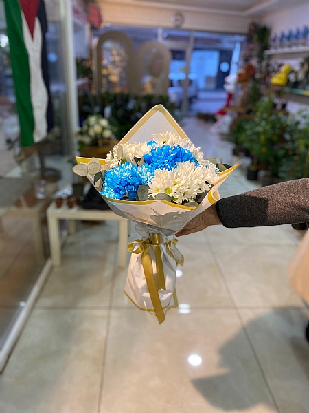 MAVİ & BEYAZ PAPATYALI BUKET